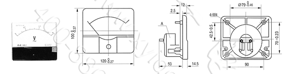 外型尺寸:120x100mm 开孔尺寸90x70mm