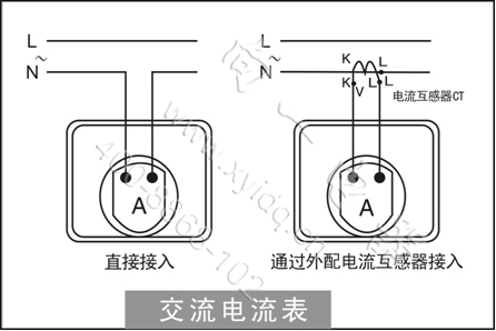 5.当输入标称电流超过AC 20A时,需另配电流互感器CT(二次电流5A)。 |
